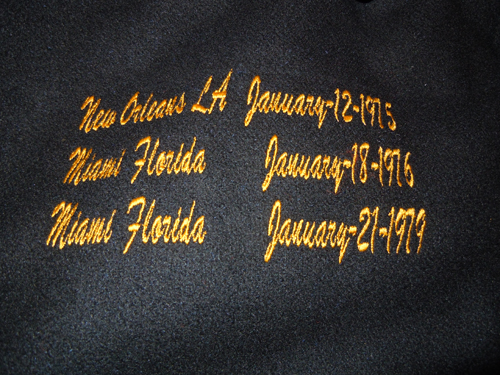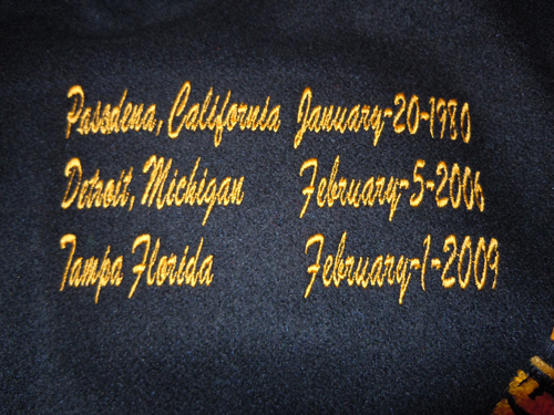 memorializing the scores of the games from each Championship year down the sleeves and the dates and locations on each front chest in gold embroidery, making it the perfect pick for staying warm while wearing your bragging rights during those chilly games!