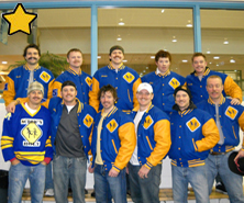 wearing their custom varsity and letterman jackets